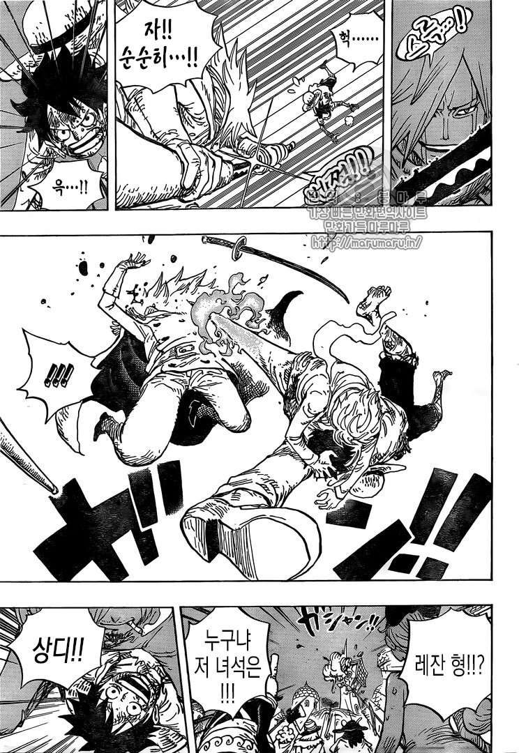 He begins transform and everyone begs him to stop, and Oven is pissed that he'd drag his sister Brulee into all of this. He attacks and that separates Luffy and Pekoms, giving Sanji enough time to report in that he sees Luffy and try To save him.Luffy starts running, but he doesn't get far. He's about to get done in, but Sanji saves him. Sanji takes to the air with "moon walk". failed Pekoms is tackled down and they forcefully close his eyes And start to beat on him.Sanji doesn't get far either, but then the ships on the shore surrounding them explode.