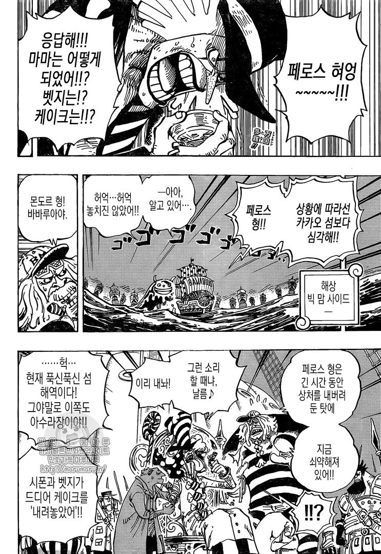 Peros: Be prepared....our fate lies on how delicious that cake tastes...!! Stussy and Morgans have escaped from the island already. People are preparing for the worst and trying to evacuate but there doesn't seem to be any chance or way to do so as Big Mom's power Prometheus looms over them. The people of Fuwarin town are cursing Chiffon for bringing the cake to them.